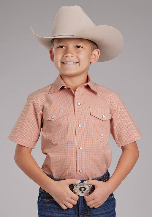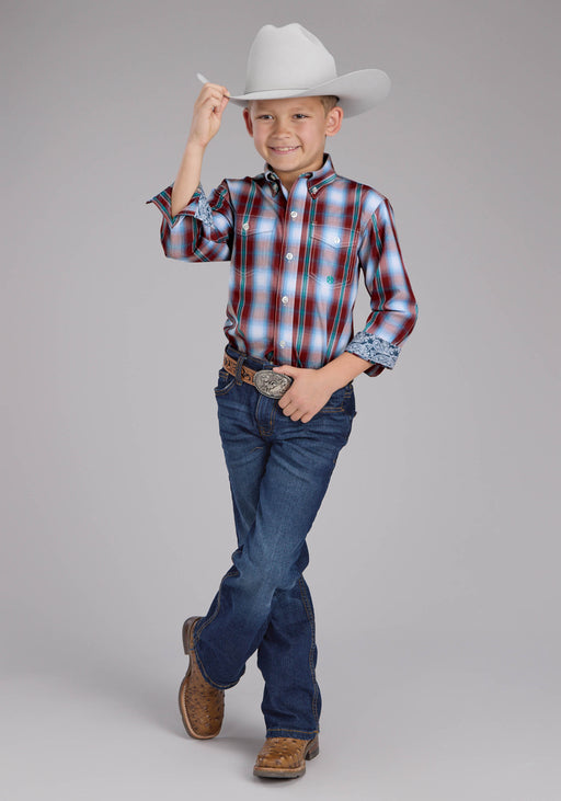 Boy's Roper Stretch Mini-Check Long Sleeve Shirt