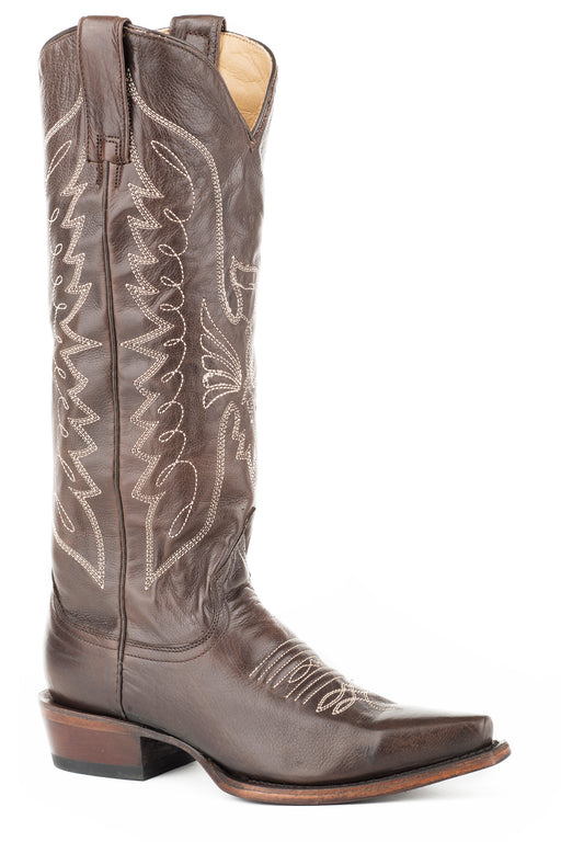 Women's Stetson Brown Calf Skin Snip Toe Boot w/ Western Embroidery