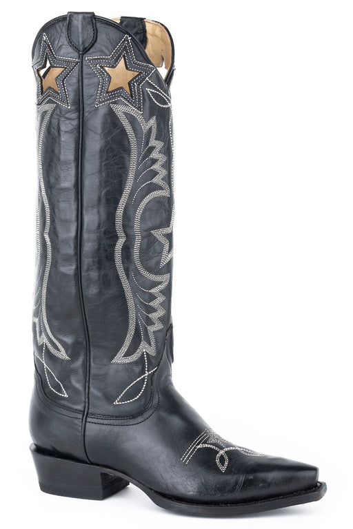 Women's Stetson Distressed Black Snip Toe Boot w/ Gold Star Underlays