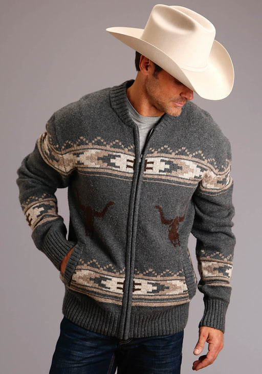 StetsonStetson Vintage Longhorn Cardigan * Wool Blend * Heathered Yarns * Zip Front * Self Knitted Collar, Cuffs, & Waistband * Front Hand Pockets * L...