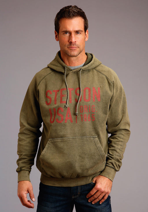 StetsonVintage Olive Color Hoodie * Pigment Dyed * 100% Cotton * Distressed "Stetson USA" Screen Print On FrontStetson, STETSON, STETSON HOODY