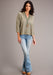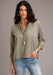Women's Olive Lyocell Pull Over Peasant Top * V-Neck With Raw Edge Collar Treatment * Finished Edge Bottom Hem * ¾ Sleeves With Single Button Cuffs * Pleat At Center Back