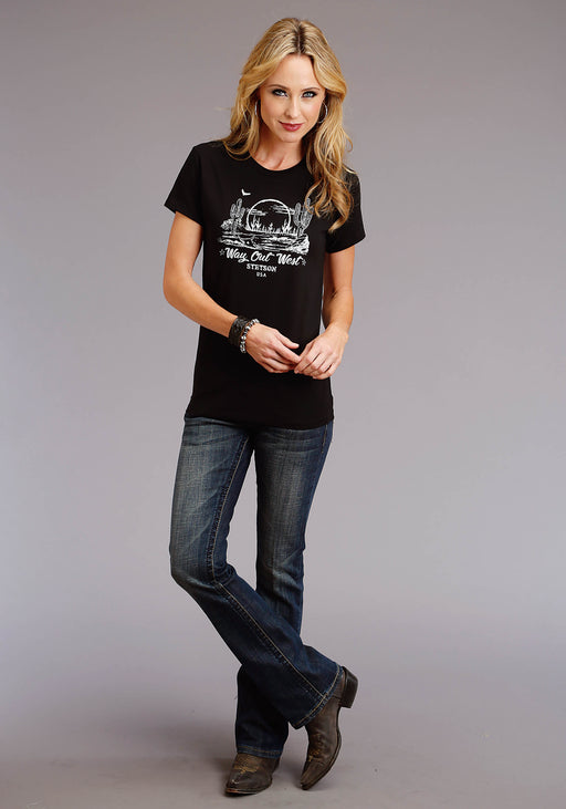 StetsonWomen's Black Short Sleeve T-Shirt * Crew Neck W/Self Collar Band * Raw Edge Short Sleeves * Garment Washed For A Super Soft Hand * Durable Cover S...