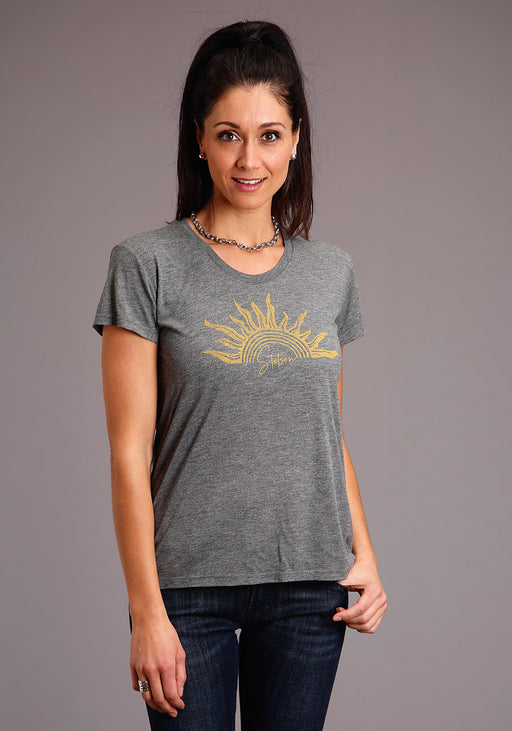 StetsonAsh Heather Short Sleeve Poly/Rayon T-Shirt * Scoop Neck With Self Collar Band * Relaxed Fit * Durable Cover Stitched Hem * Gold Sun With Stetson S...
