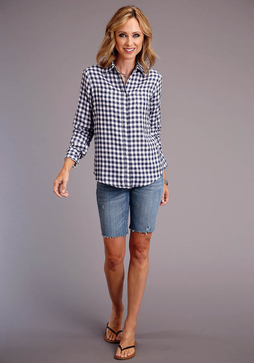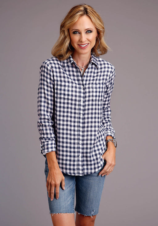 StetsonNavy And White Double Sided Gingham Plaid Blouse * Single Point Bias Cut Curved Back Yoke * No Front Yoke * Full Front Button Closure * Patch Pocke...