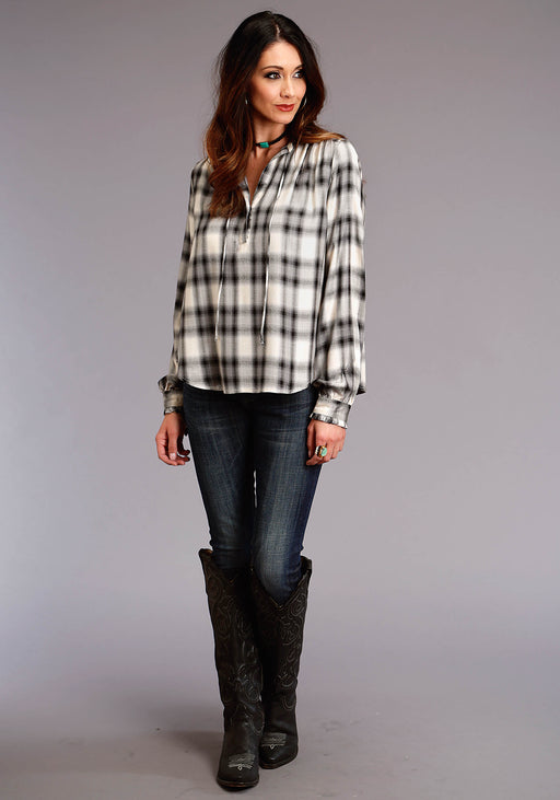 StetsonAsh Plaid Loose Peasant Blouse * Open Placket At Front With Tie Closure * Drop Shoulders With Gathers * Straight Back Yoke With Gathers * Long Slee...