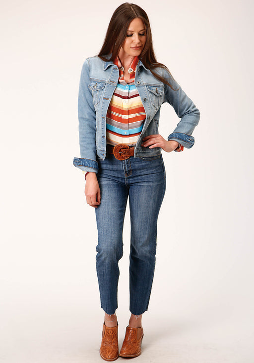StetsonWomen's "Sunset Serape" Print Rayon Herringbone Western Long Sleeve Blouse * Single Point Deep Curved Back Yoke