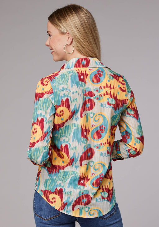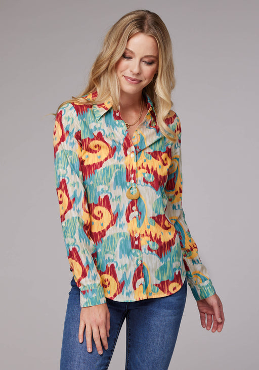 RoperWomen's Great Looking Long Sleeve Shirt In Poly Crepe * Fun "Ikat Paisley" Print * Sleeves Have Tab And Button For Rolling Up * Button Front * Shir...
