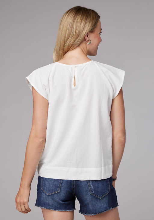RoperWomen's Short Sleeve Peasant Blouse In Solid Cream Cotton Rayon Linen Blend * Flutter Raglan Sleeves * Embroidered