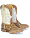 Square Toe Tan Vamp w/ Tooled Saddle Vamp * Crackle White Shaft Tooled Crown * Handcrafted Boot * Square Toe * Double Welt * 11" Shaft * Walking Heel * Obvious Comfort Removable * Leather Lining * Transparent Obvious Sole *