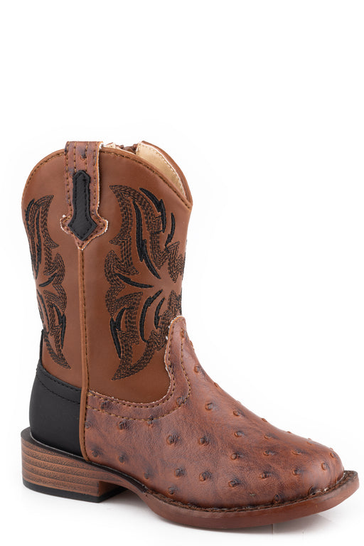 Boys Roper Tan Faux Leather Toddler Boot w/ Western Stitching