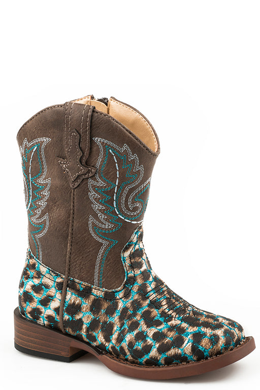 Girls Roper Swirly Turquoise Glitter Square Toe Toddler Boot