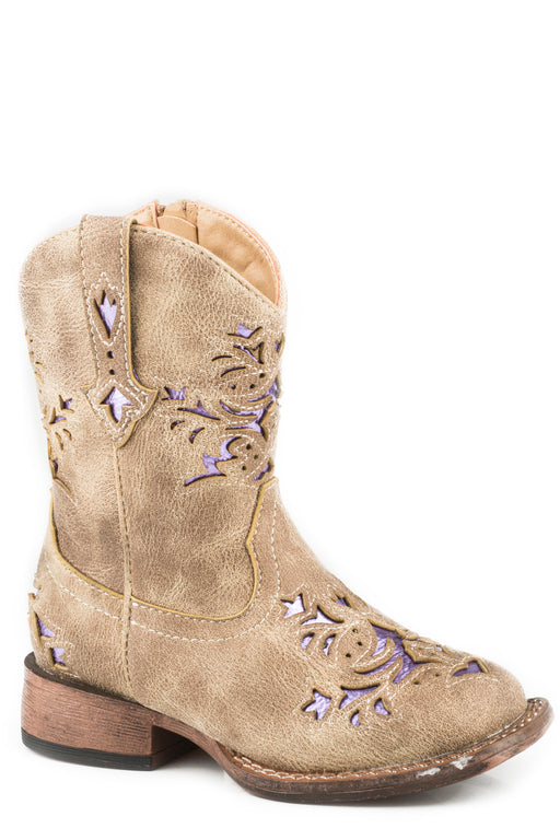 Girls Roper Soft Tan Square Toe Toddler Boot w/ Embroidered Arrows