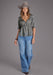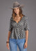 Women's "Horse Pennies" Print Rayon Herringbone Short Sleeve V Neck Blouse * Full Covered Button And Loop Front Closure * Rouched At Front Shoulder And Bust