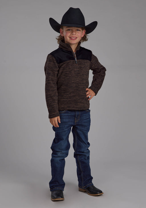 Roper100% Poly Heathered Micro Fleece Pullover * Stand Up Collar * 1/4 Length Zip Front * Straight Front Yokes & 1 Pt Curved Bk Yoke Pieced W/Nylon ...