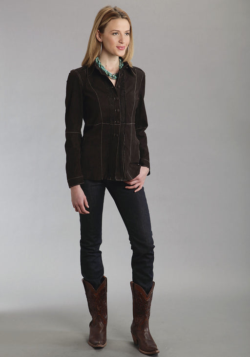StetsonUnlined Suede Shirt Jacket * Pintuck Detail On Shoulders, Front & Back * Pintucks, Princess, Waist & Sleeve Seams Are Highlighted With Cont...