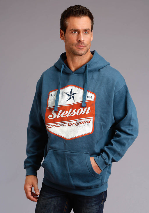 StetsonMen's Blue Cotton/Poly Blend Fleece Hooded Sweatshirt * Blue Jersey Hood Lining * Front Kangaroo Pocket * Rib Knit Cuffs And Waistband * Cream &...