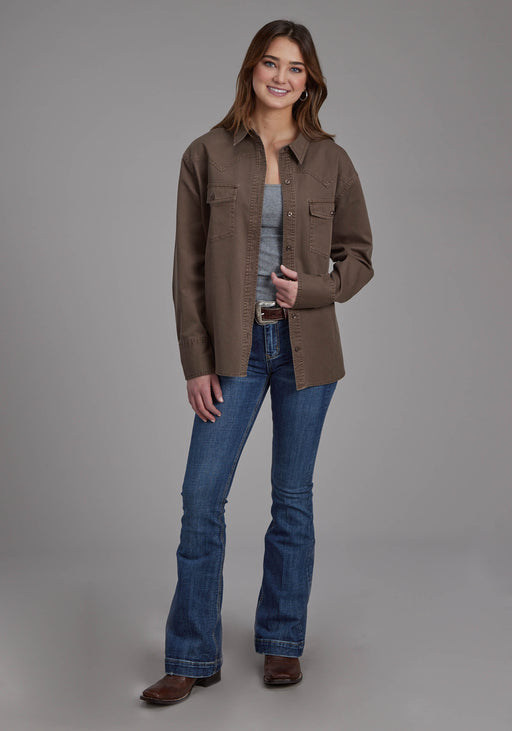 Women's Oversized Cotton Twill Western Shirt Jacket * Garment Dyed * Long Sleeves * 1 Pt Front And Back Yokes * 1 Point Pockets & Flaps * 4 But...
