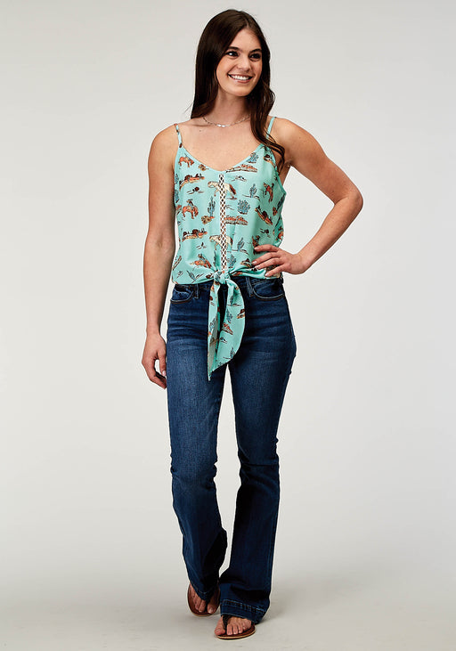RoperWomen's Desert Toile Printed Rayon Camisole Top * "V" Neckline * Center Front Lace Trim * Tied At Waist * Adjustable Straps * Garment Washed For So...
