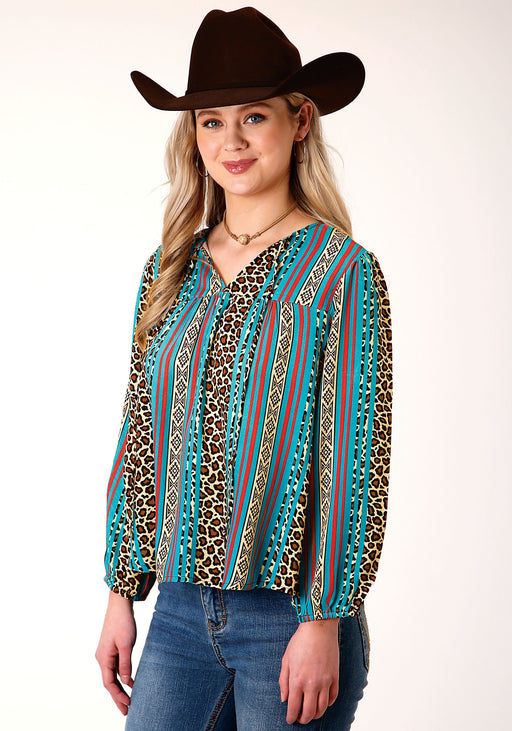 Roper Leopard Stipe Long Sleeve Blouse