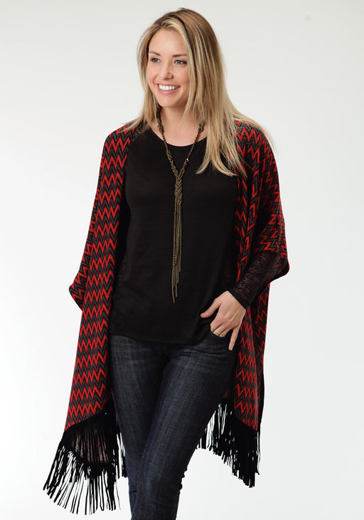 RoperFashion Forward Poncho In Soft Brushed Sweater Jersey * Bold Allover Chevron Print * Faux Suede Fringe Around Hem *Roper, Studio West, SOLID OR PRI...
