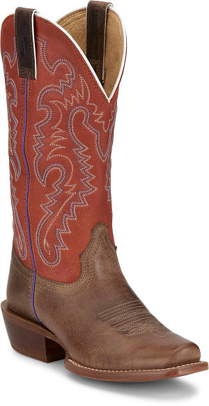 Women's Roper Vintage Tan Faux Leather Square Toe Boot w/ Leather Overlay