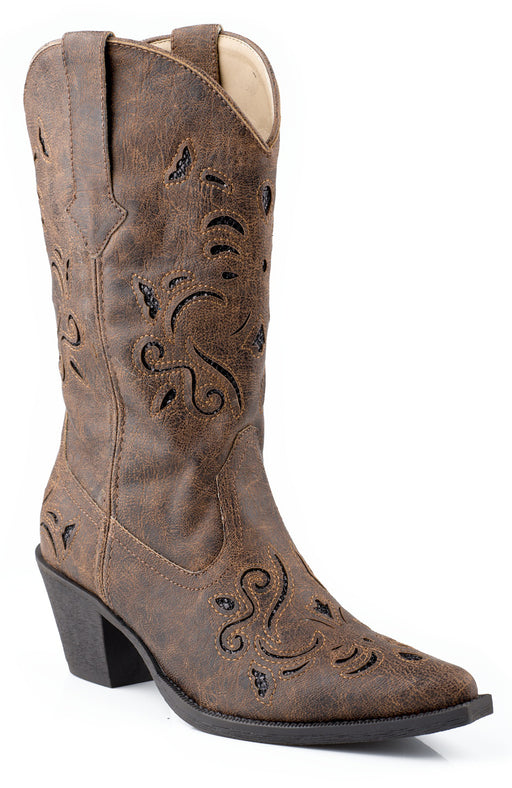 Women's Roper Vintage Brown Snip Toe Boot w/ Glitter Underlay