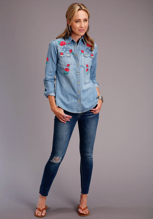StetsonWomen's Med Blue Denim Western Shirt * Single Point Front Yokes And 3 Point Back Yoke * Front Single Point Patch Pockets With Sawtooth Pocket Flap ...