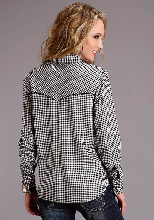 Stetson Black & White Gingham Blouse w/ Embroidery