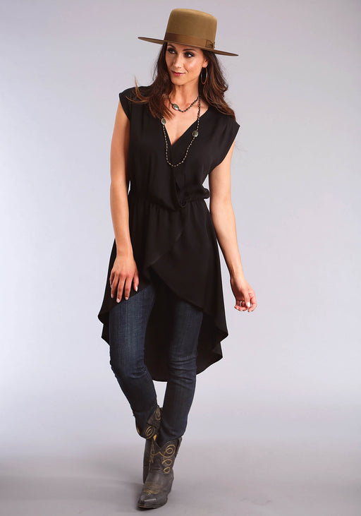 StetsonWomen's Black Poly Crepe Blouse * Open Notch Collar V-Neck * Long Sleeves With Slight Bell * Large Pleat At Center FrontStetson, STETSON, STETSON B...