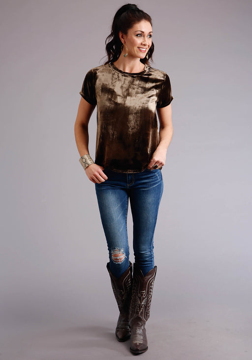 StetsonWomen's Bronze Velvet T-Shirt * Self Neckline * Straight Hemline * Short SleevesStetson, STETSON, NOVELTY SOLID