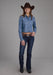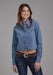 Women's Long Sleeve Denim Cropped Western Blouse * 2 Btn Cuff * 1 Pt Front And Back Yokes * Smile Pockets With Emb Arrow Pts * Button Closure * Garment Washed