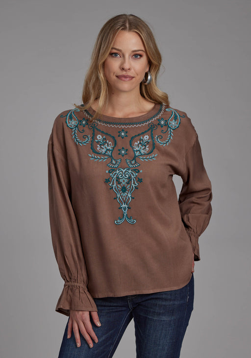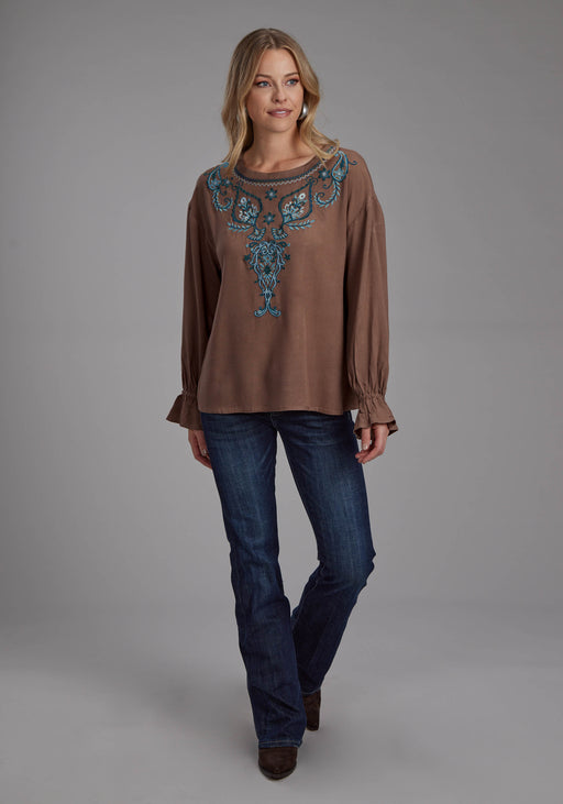RoperWomen's Lovely Blouse In Tan Rayon Challis * Boat Neckline With Single Button Back Keyhole Opening * Straight Body * Long Sleeves With Elastic Cuff...