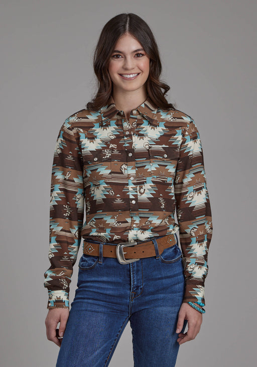RoperWomen's Icon Aztec Printed Rayon Western Blouse * Long Sleeves * 1 Pt Front And Back Yokes * 1 Point Pockets & Flaps * Snap Closure * Garment W...