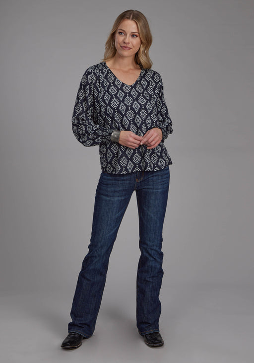 RoperWomen's Icon Aztec Printed Rayon Blouse * "V" Neck Long Sleeve Blouse * Button Closure And Cuffs * Garment Washed For Softness