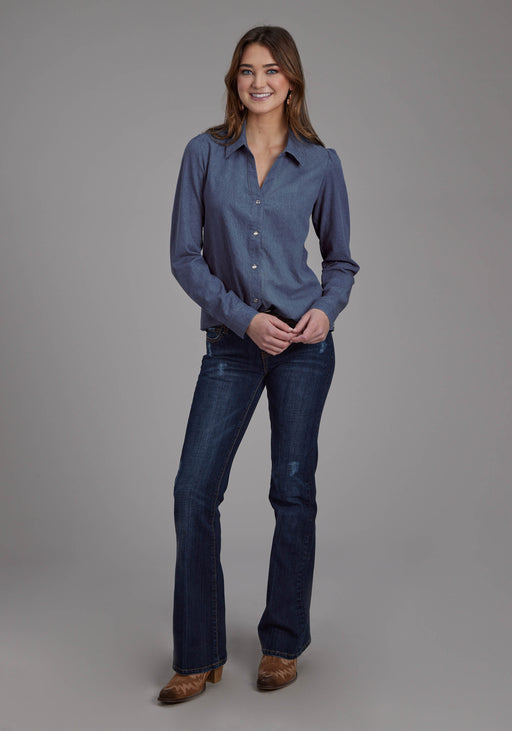 RoperWomen's Long Sleeve Denim Cropped Western Blouse * 2 Btn Cuff * 1 Pt Front And Back Yokes * Smile Pockets With Emb Arrow Pts * Button Closure * Gar...