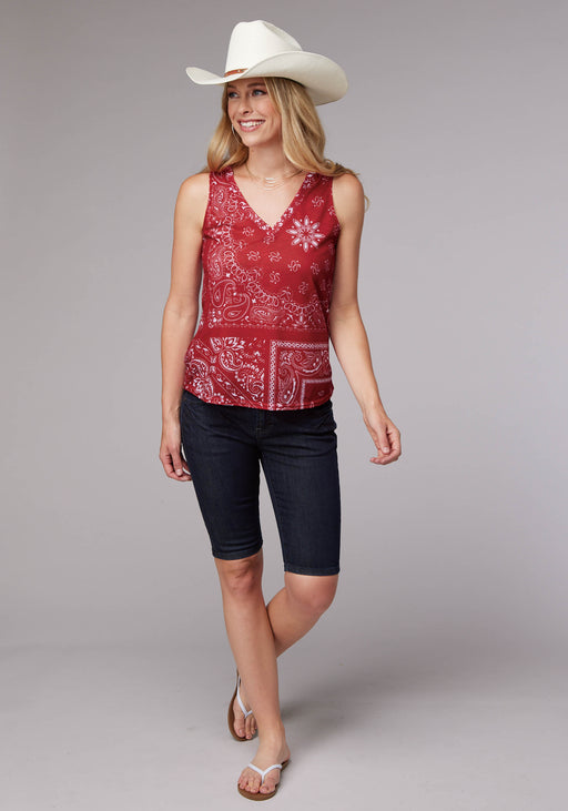RoperWomen's Cute V-Neck Tank In Poly Slub Jersey * Front And Back Bandana Sublimation Print * Curved Hem