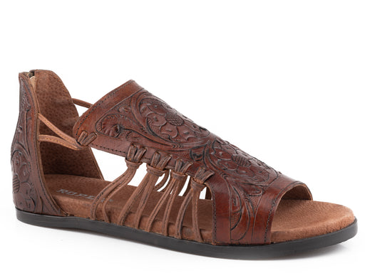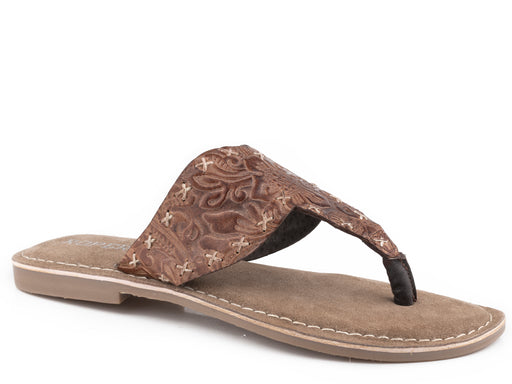 Roper Burnished Tan Tooled Open Toe Sandal