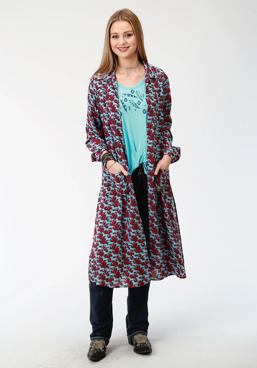 RoperStampede Printed Rayon Ladies Long Length Cardigan * Curved Front And Back Yokes * Front Patch Pockets * 3 Snap Cuff With Roll Tab * Side Slits * G...