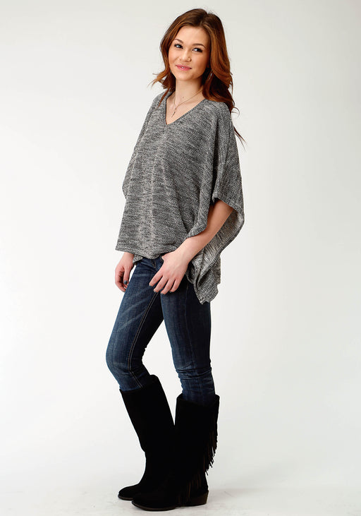 RoperBlack Sweater Knit Poncho * Handkerchief Hemline * Border Screen Print Embellishment * Garment Washed For SoftnessRoper, Five Star, SOLID OR PRINTE...
