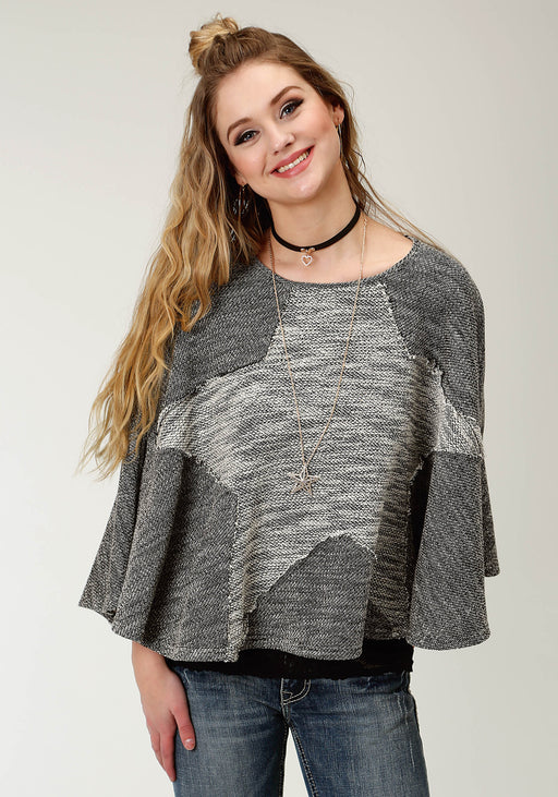 RoperBlack And White Textured Knit Poncho * Contrasting Star Shaped Decoration * Perfect Fall Layering PieceRoper, Five Star, SOLID OR PRINTED KNIT