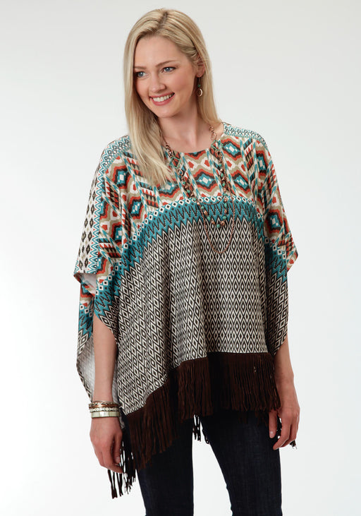 RoperFashion Forward Poncho In Soft Brushed Sweater Jersey * Bold Allover Chevron Print * Faux Suede Fringe Around Hem *Roper, Studio West, SOLID OR PRI...