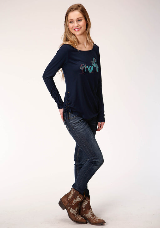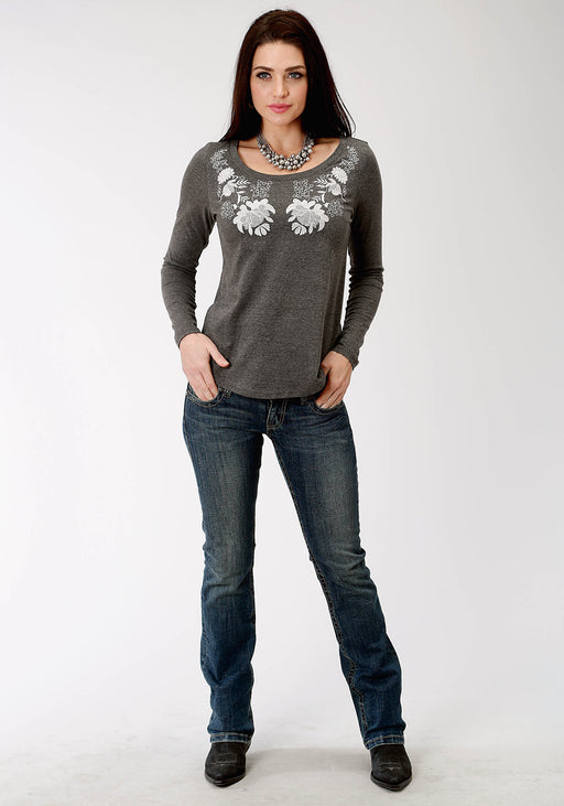 RoperWomen's Grey Jersey Long Sleeve Tee * Side Accent Ties * Screen Print Decoration * Garment Washed For SoftnessRoper, Five Star, NOVELTY/APPLIQUE/EM...