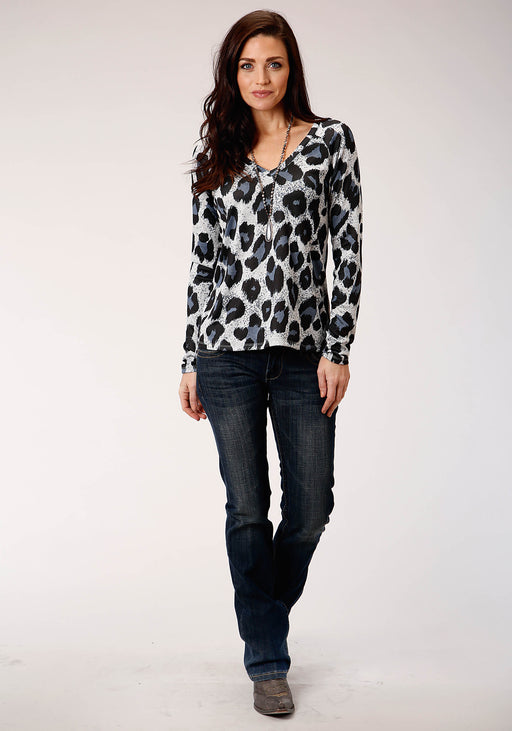 RoperWomen's Comfy V-Neck Top In Soft Poly Sweater Jersey * Fashionable Leopard Sublimation Print * Curved HemRoper, Studio West, NOVELTY/APPLIQUE/EMBRO...
