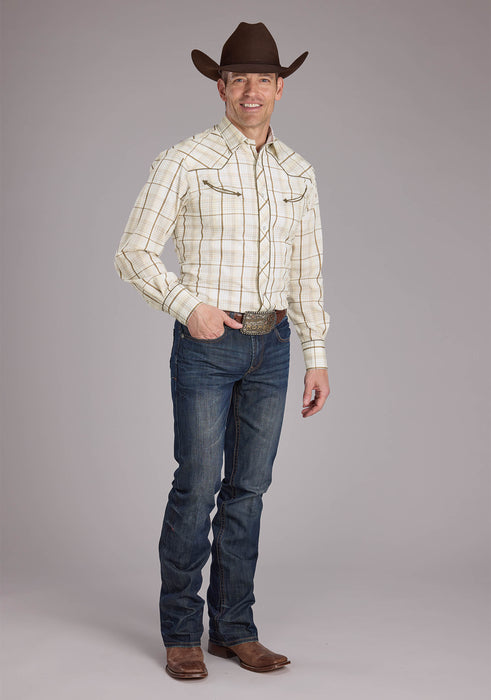 Men's Roper Neutral Plaid Long Sleeve Western Shirt