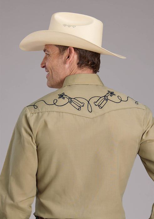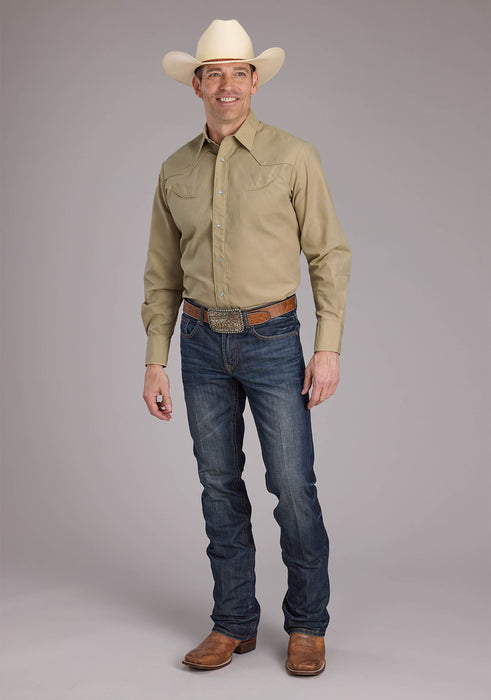 Men's Roper Solid Tan Long Sleeve Western Shirt