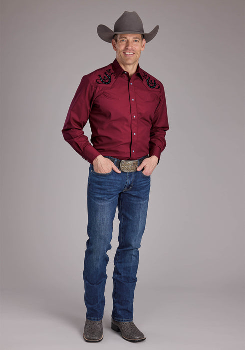 Men's Roper Solid Berry Long Sleeve Western Shirt