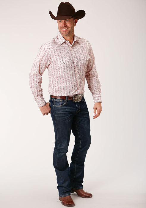 Men's Long Sleeve Western Style Shirt * Standard 1 Pt. Front & Back Yokes * Patch Pockets & Flaps * Cotton/Poly Fabric Printed With Allover Or Wallpaper Stripe Florals * 3 Snap Shaped Barrel Cuff