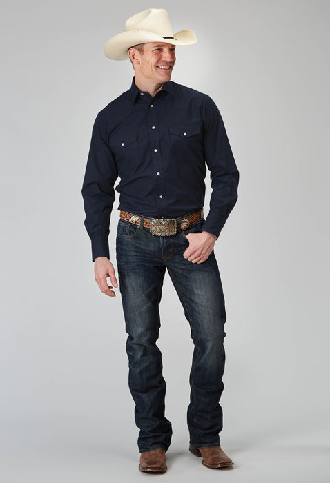 Men's Long Sleeve Western Style Shirt * Standard 1 Pt. Front & Back Yokes * Patch Pockets & Flaps * Solid Cotton/Poly Broadcloth * 3 Snap Shaped Barrel Cuff