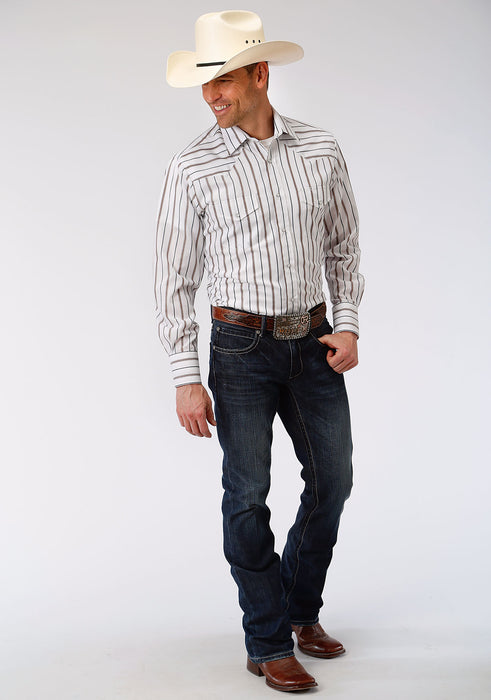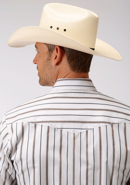 Men's Long Sleeve Western Style Shirt * Standard 1 Pt. Front & Back Yokes * Patch Pockets & Flaps * Striped Cotton/Poly Broadcloth * 3 Snap Cuff